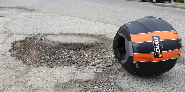 Ir conduciendo con tu coche y pasar por encima un bache duele. Pero hacerlo en moto duele el doble, y lo que es peor, es muchísimo más peligroso y da la sensación de haber destrozado la llanta o suspensión de la moto.