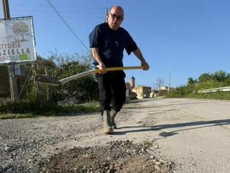 Si en España un centenar de vecinos cántabros se pusieron a arreglar la carretera por su propia mano, en Italia han puesto a un cura a tapar los baches, y no es una metáfora.