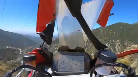 El irse recto no hubiese sido el problema, más bien que la única escapatoria era un pequeño terraplén que daba vistas abiertas a un barranco por el que la Panigale se despeña varios metros abajo. Él dice que se puede salvar tras agarrarse a unos matorrales, pero no la moto de 39.000 euros.