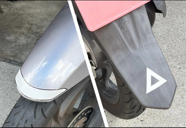 Puede que a simple vista parezcan simples pegatinas, pero esos pequeños triángulos en el guardabarros trasero y la línea pintada en el delantero de muchas motos japonesas esconden una de las curiosidades más antiguas de la normativa de tráfico del país.