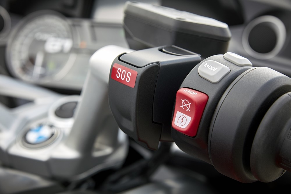 El testigo situado en el cuadro de instrumentos, y con señal acústica, informa de que efectivamente se ha emitido la llamada. La unidad de control, ubicada en la piña derecha del manillar, dispone del botón SOS, protegido por una tapa, con el se activa o cancela la llamada de emergencia. También a través de un micrófono y un altavoz integrados. Tiene en cuenta tres posibles escenarios: La activación automática debido a una caída o colisión grave, la activación también automática pero debido a una caída o colisión leve y la manual mediante el botón SOS, en las situaciones que el piloto requiera.