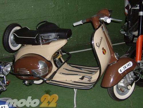 Pero vayamos por partes, y primero, la muestra de pequeñas joyas que fueron donadas para este evento. La foto de cabecera es de una Vespa 125S de 1958. Cincuenta años tiene esta pequeña joyita que relucía como el primer día.