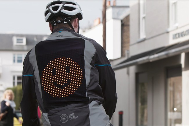 La idea de sus creadores es que la Emoji Jacket "permite a los ciclistas expresar sus sentimientos y crear un vínculo emocional con los demás ocupantes de la vía". Según los ingenieros de Ford el panel de control está ideado para que distraiga lo menos posible al ciclista, algo que podríamos poner en duda ya que su posición en el manillar lo obligaría a agachar la cabeza y perder de vista la circulación.