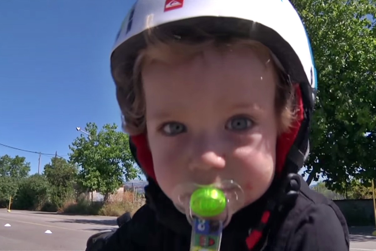 A esa edad el niño escasamente sabe lo que hace. Lo que en el vídeo se cataloga como "preparación" o "entrenamiento" no es más que un juego para el chico. Sí, puede gustarle el olor a gasolina o andar en un correpasillos con forma de moto, pero de ahí a saber que está subido en una moto con todo lo que ello supone hay un mundo. Son los adultos quienes saben lo que el niño está haciendo.