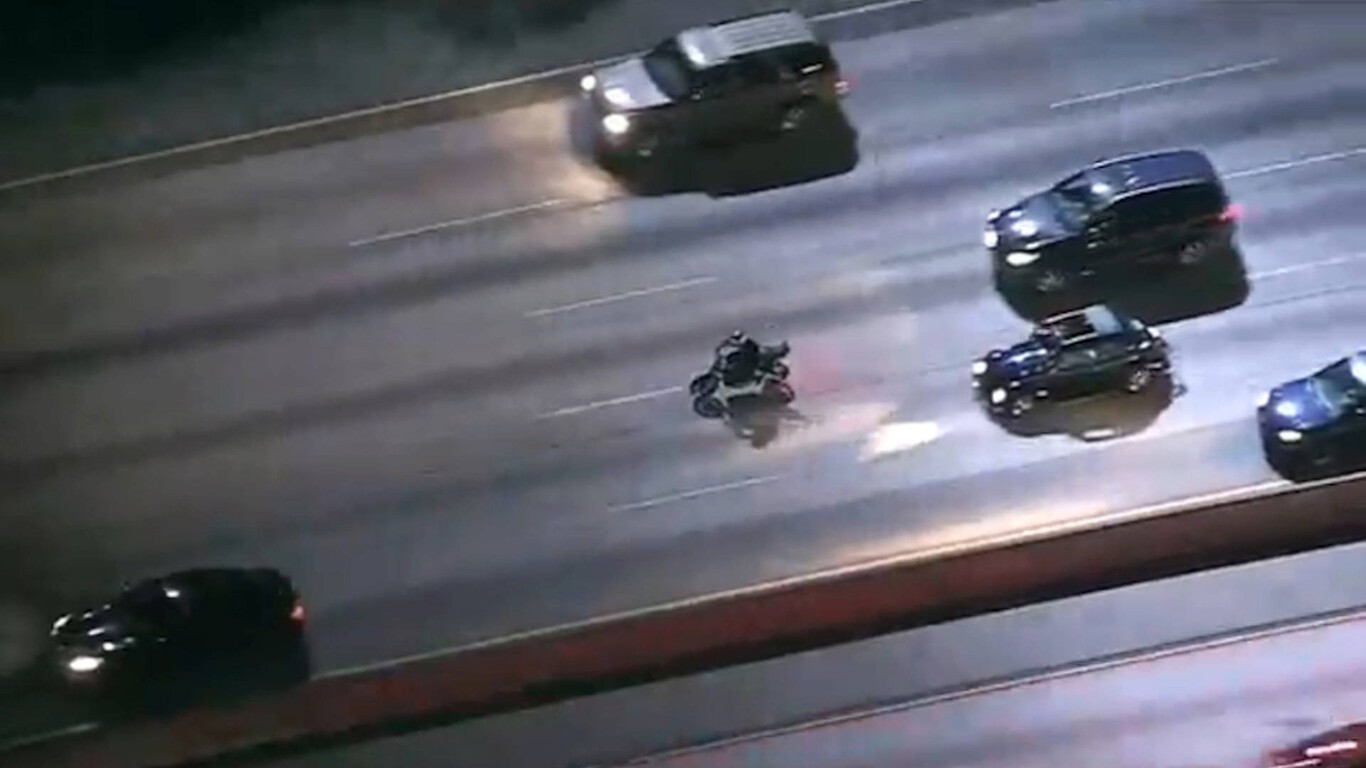 Los patrulleros yanquis deben ser rápidos, porque durante 70 kilómetros de persecución a más de 200 km/h la moto no consiguió escapar en plena autopista.