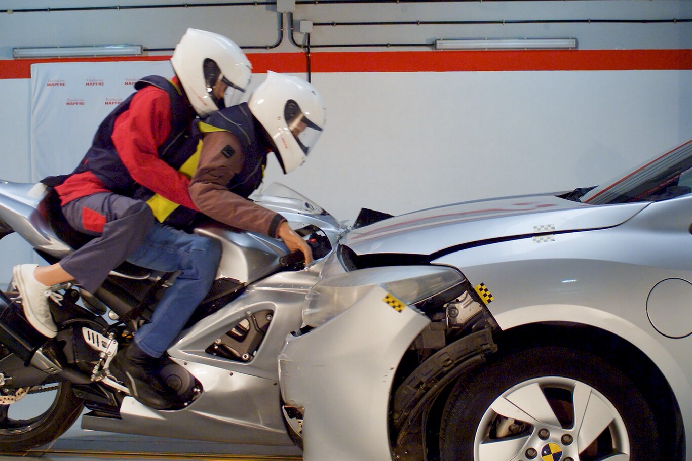 En cualquier caso, el estudio que ha compartido la DGT ha sido protagonizado por CESVIMAP (el Centro de Experimentación y Seguridad Vial) y MAPFRE. En una de las casuísticas se experimenta con una colisión frontal entre un coche y una moto, esta última con dos ocupantes, y a 40 kilómetros por hora. Es solo un pequeño fragmento del completo estudio llamado 'Ergonomía y sensaciones en la utilización de airbag de motorista'.