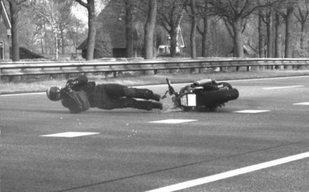 Se trata del caso de un motorista holandés que fue fotografiado por un radar cuando "circulaba" a 137 km/h pegándose la gran rascada por el asfalto. No le pasó nada grave, tenéis los datos concretos en el enlace al final, pero yo querría preguntar, para pasar por delante del radar arrastrando a 137 km/h ... ¿a cuánto ibas realmente, animalico?