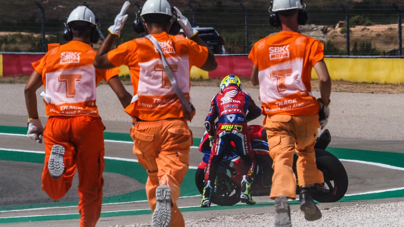 "Ha sido una lástima esta caída, estamos trabajando muy duro y por eso es decepcionante", admitía un Bautista que se ha caído en tres de las cuatro carreras largas que se han disputado en MotorLand, el circuito en el que mejor ha ido la Honda. No ha podido traducir en puntos el buen rendimiento de la moto.