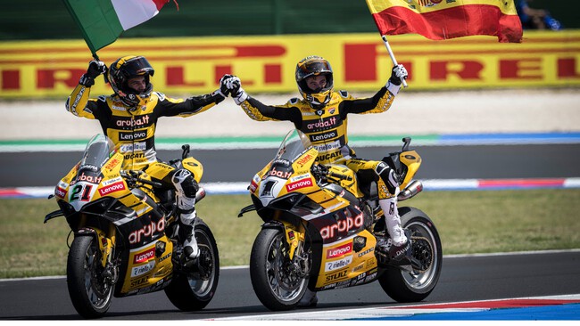 La llegada de las Superbikes a Misano solo ha servido para refrendar que la Ducati Panigale V4 R es una moto de otra categoría respecto a la competencia, y por lo tanto es imposible que pierda. No solo Bautista ha ganado sino que Michael Ruben Rinaldi ha completado el doblete de Borgo Panigale en la segunda posición.