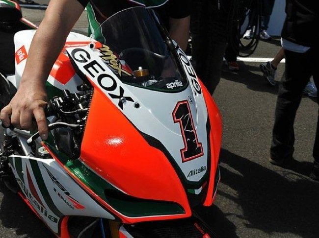 Los chicos de motorblog.it nos enseñaban las imágenes de la máquina de Max Biaggi, la Aprilia RSV4 con el flamante número 1 de campeón del mundo que lucirá por derecho el campeón italiano. Este post no trata de hacer mucha conversación en temas de decoración, sino de que disfrutemos con ese dorsal y esa, sinceramente, preciosa Aprilia.