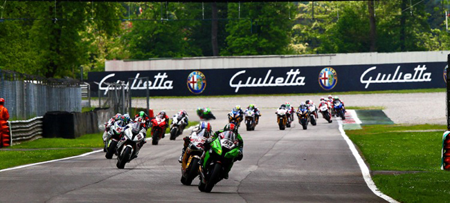 Si hacéis memoria recordaréis que estaba programada para las 15.30. Cabe subrayar de nuevo que después de la bandera roja de la primera carrera corrió la categoría de Supersport, secando la trazada y dejando el asfalto en francamente buenas condiciones. Sin embargo, la salida se atrasó hasta media hora pues en el momento de ir a parrilla algunos de los “grandes” pilotos levantó la mano queriendo avisar de lluvia, aunque no la llegamos a ver. De hecho, sino hubiera sido así, podríamos haber visto una carrera completa en seco. Las malas lenguas están dejando caer que cada decisión fue en favor de ciertos equipos y pilotos italianos. Casualidades de la vida, en Italia y en un campeonato italiano, Max Biaggi había sido remolcado hasta su box por Carlos Checa ya que su Aprilia había dicho basta. Las imágenes de televisión nos mostraban a todo el equipo de Noale desesperado intentando arreglar los problemas de la RSV4. Si necesitaban tiempo para arreglarla, lo tuvieron. Pero parece ser que no fue el único beneficiado por ese retraso y es que Melandri pudo haber parado voluntariamente su BMW S1000RR para retrasar la salida aun más – y por lo cual podría ser penalizado –. Os preguntaréis por qué iba Marco, con el pepino de moto que lleva, a querer no correr. Pues, como Max, el italiano había abandonado en la primera carrera sólo que éste había tenido una caída bastante fuerte en la parabólica y, como sabréis, sólo tienen disponible una moto.
