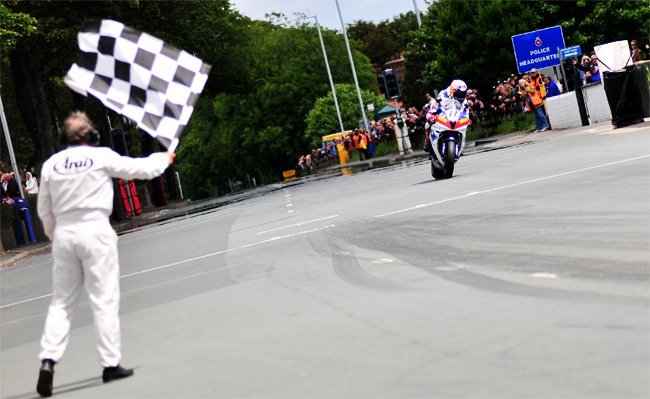 Donald ganaba tiempo y se colocaba en la segunda posición siguiendo de cerca a Gary. Pero la historia de las banderas rojas no termina aquí porque cuando Guy Martin se ponía a sólo medio segundo de Donald, de repente, Guy había perdido ocho segundos en el siguiente sector. Más tarde nos enteramos que, de nuevo, las banderas rojas habían aparecido brevemente y Martin había cortado gas cayendo hasta la cuarta posición. Sin embargo hubo algo de justicia pues a sólo tres kilómetros de la meta la moto de Donald dijo basta y dejó la segunda plaza en manos McGuinness y el podio al alcance de Martin. Un carrera rara que llegaba a su fin.