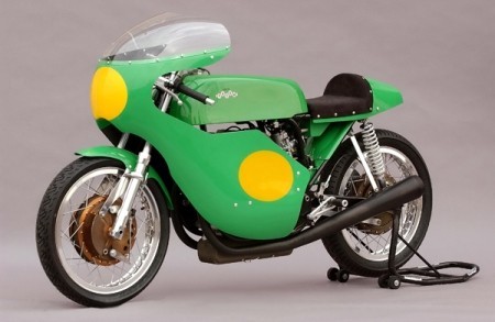 La moto no tiene malas prestaciones, 75CV a la rueda trasera entre las 10.800 y las 11.100 rpm, y un par de 5.43 Kgm a 8.600 rpm, pero empezando a notarse desde las 7.500. En definitiva, una máquina muy interesante y con todo el encanto de las motos de los años 50, aquí os dejo unas cuantas fotos más, y la comparación con la original en las dos últimas.