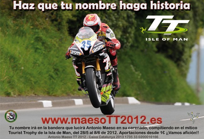 Como el propio Maeso explica en la web preparada para la ocasión otros pilotos como Lopez Mella consiguieron un hueco para llevar a cabo sus sueños gracias a una afición que nunca dejó de empujar, apoyar y animar. Ahora tenemos la ocasión de repetir la hazaña a la vez que nuestros nombres lucen en los carenados de las motos que volarán por el trazado manés bajo la bandera española. Esperamos que el proyecto pueda seguir adelante poco a poco y que en 2012 el TT cuente con un protagonista sorpresa. ¡Gracias Jose por la pista! Tenéis todos los detalles en su web, no perdáis la oportunidad. Más información | MaesoTT2012.es