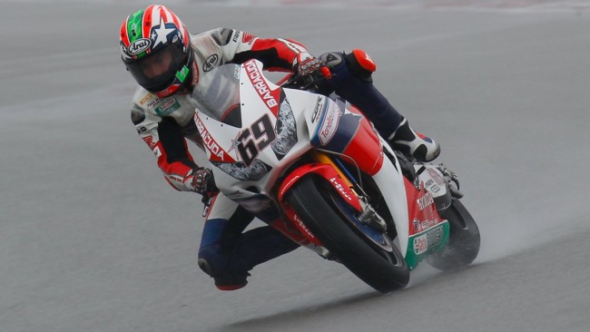 Por suerte y aunque con un asfalto muy mojado en las primeras vueltas, no hubo problema en dar la salida y ver así como Nicky Hayden se volvía a subir a lo alto del cajón en la categoría de Superbikes, aprovechando las bondades de su Honda CBR1000RR en estas condiciones.
