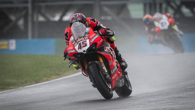 Rea salió primero y parecía que se iba a volver a escapar, pero de repente dejó de llover, la pista se fue secando y eso metió en muchos problemas a la Kawasaki del campeón. Loris Baz primero y Chaz Davies después dieron cuenta de Rea, así que la resolución del título se pospone hasta la última ronda en Estoril.
