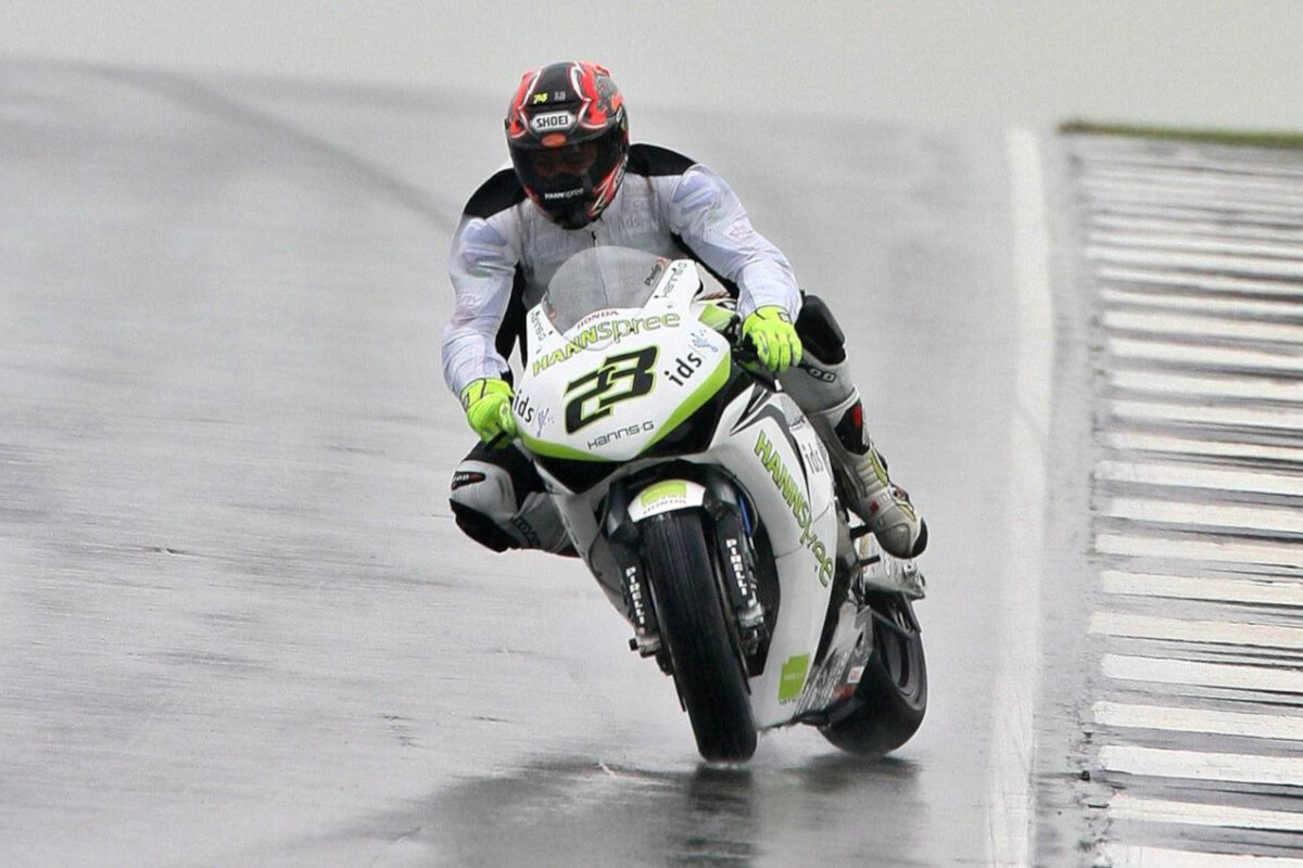 Aquel baile imposible sobre el asfalto mojado de Donington Park, en 2008, subido a una Honda que parecía flotar más que rodar.
