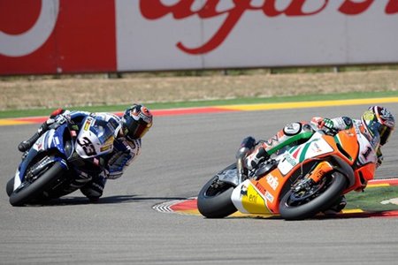 Nada menos que catorce carreras ha tardado el vigente campeón, Max Biaggi, en conseguir una victoria esta temporada a lomos de su Aprilia. Y ha venido a hacerlo en nuestra casa, en la segunda carrera celebrada en el fantástico escenario de Motorland Aragón en una segunda carrera que en cabeza ha sido un calco de la primera, salvo por pequeños e importantes matices. Volvían a poner tierra de por medio Max y Marco Melandri, pero esta vez ha sido Marco el que ha tenido un sustito que le ha impedido luchar por la victoria, acabando segundo. El otro matiz importante que ha cambiado es que en esta ocasión Carlos Checa ha entrado en la tercera plaza, consiguiendo un buen resultado en un fin de semana negativo en lo que a puntos perdidos se refiere.