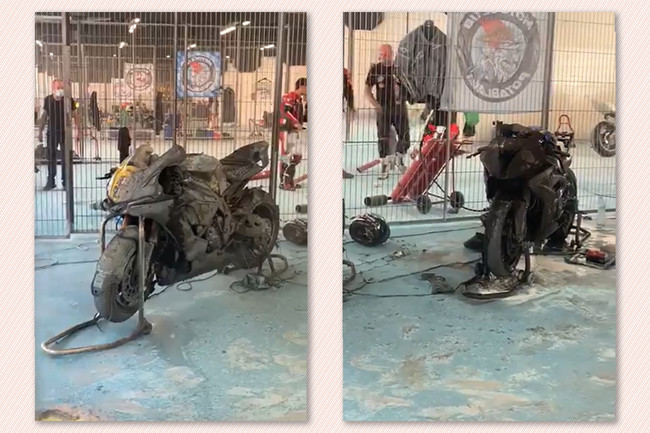 La faena afectó a dos motos y todos los presentes se llevaron un susto importante. Las imágenes de las motos calcinadas son de tristeza, más si se tiene en cuenta que se trata de motos de Superbikes. El incendio se llevó por delante una unidad de Yamaha YZF-R1 y una BMW S 1000 RR.
