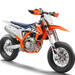 A nivel estético, la KTM 450 SMR ha reforzado su imagen pintando su chasis en color naranja a juego con las tapas laterales, los cubremanos y el guardabarros delantero. Un diseño que rememora a los colores de las máquinas oficiales del Red Bull KTM Factory Racing y que combina a la perfección con la nueva funda azul del asiento así como con sus gráficos.