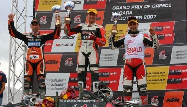 Pero siempre nos quedará en el recuerdo el haberle visto en lo más alto del podio de una prueba del Campeonato del Mundo de Supermotard. Ocurrió en el 2007, en Grecia, en la prueba que cerraba la temporada y donde se hizo con la victoria en la segunda manga y siendo finalmente quinto en el campeonato. Hasta la fecha ha sido el primer y único español en conseguirlo.