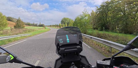 El módulo se sitúa justo por encima de la pantalla TFT, proyectando los datos directamente sobre el parabrisas con una nitidez sorprendente incluso bajo luz solar directa. Por lo que para ver la información, solo habría que desviar la vista levemente hacia abajo.