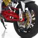 Por lo menos, en el caso de la Tesi 3D se han simplificado los brazos de dirección para que sólo discurran por el lateral izquierdo, mientras que en los modelos anteriores iban por ambos lados del basculante. Aun así el sistema sigue evolucionando, porque como podéis ver, casi en cada foto el amortiguador delantero está en una posición distinta.