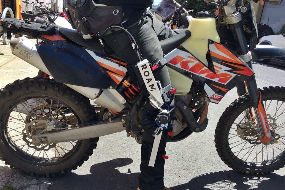 Aunque la idea inicial de Roam está destinada a los esquiadores, la propia empresa ya ha hecho algunas pruebas con adaptaciones para su uso en motocicletas como el de la foto que encabeza este artículo. Su propósito es el mismo que en el esquí, descargando peso sobre las piernas, ayudando a la absorción de impactos y favoreciendo un mayor control sobre la moto al reducir la fatiga de las piernas.
