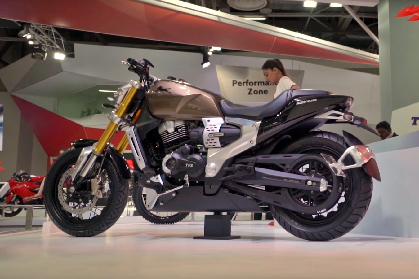 Si hace bien poco te contábamos que en el Auto Expo de la India había aparecido la atípica UM Renegade Thor eléctrica, resulta que no iba a ser la única sorpresa. Confirmando esta tendencia por las motos con propulsiones alternativas ha irrumpido la TVS Zeppelin Concept: una power cruiser híbrida que adelanta un futuro modelo.