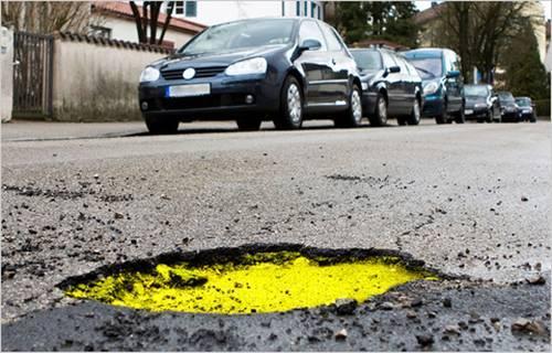 Está claro que lo ideal sería que subsanasen el problema pero de esta forma, al menos, podremos verlos desde lejos y esquivarlos. Aunque conozco alguna carretera en la que el asfalto pasaría a estar completamente amarillo.