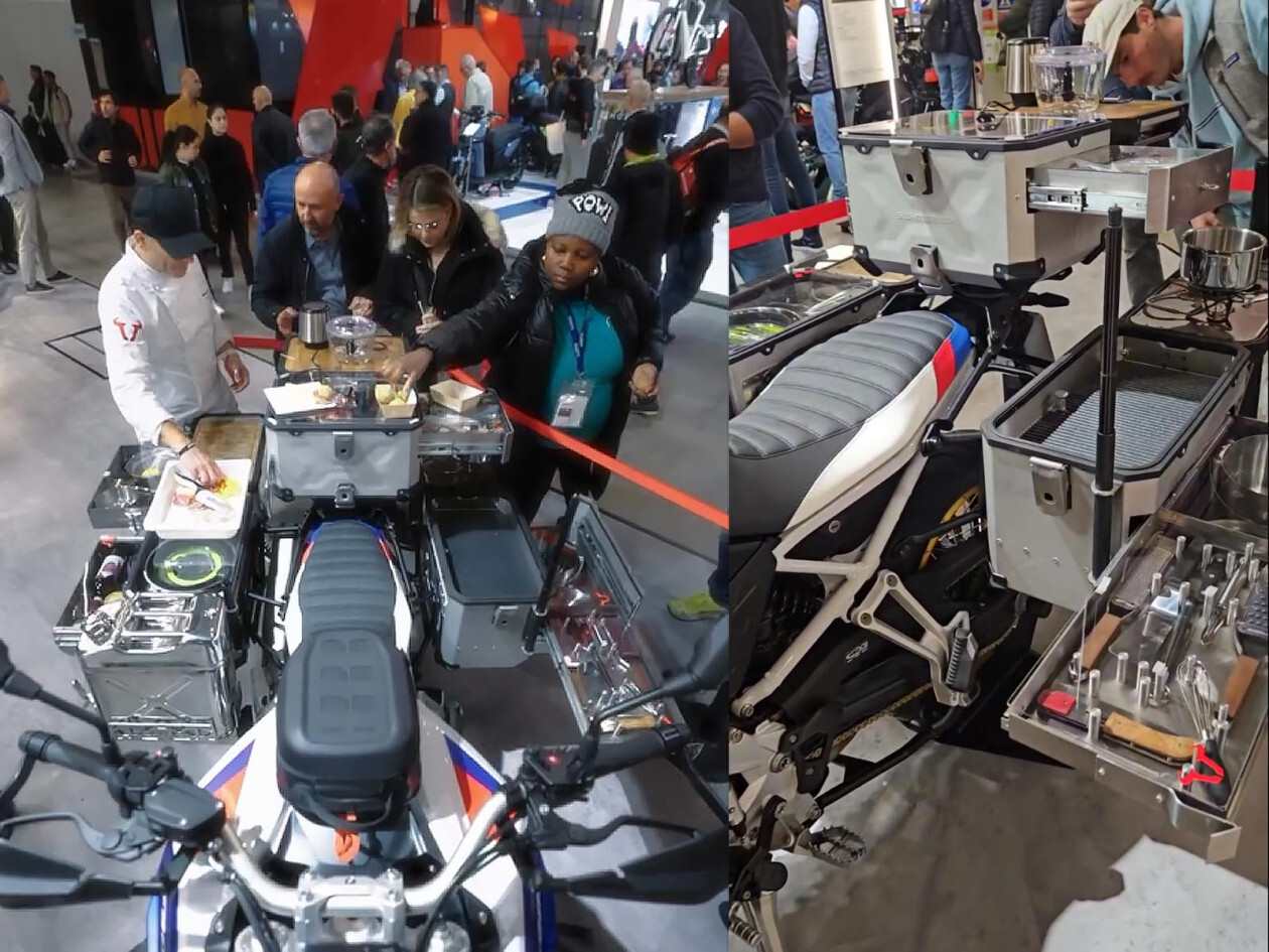 En el pasado EICMA de Milán hubo un stand que atrajo la mirada y atención de todos: una moto adventure como la BMW F 900 GS plagada de baúles de cocina para tener una moto camper al completo. Y contra todo pronóstico, atrajo muchas, muchísimas miradas.