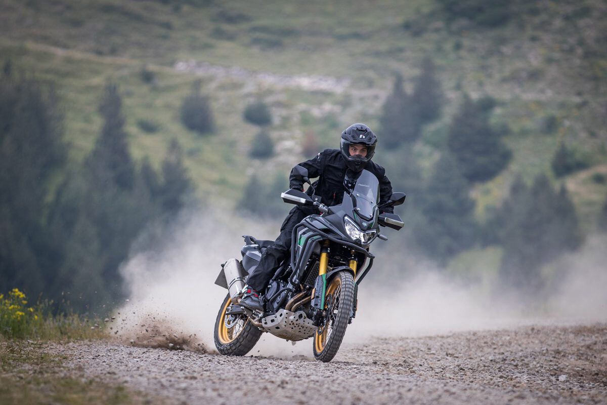 Tiene un evidente concepto de trail-enduro, con unas líneas cuidadas que en cierto modo recuerdan a la Africa Twin. Equipa de serie llantas radiadas, con delantera de 21”, trasera de 18” y neumáticos Tubeless. El peso en seco es de 190 kilos.