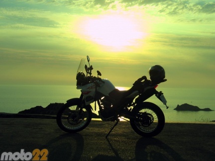 Una vez hecha la sesión fotográfica me he vuelto a Cadaqués para desayunar y ponerme de nuevo en ruta, esta vez hacia el oeste. Ayer os comenté que el GPS que llevo se empeñaba en meterme por autopista, pero hoy, tras cambiarle los criterios de búsqueda, se ha empeñado en meterme por carreteras de segundo y tercer orden. En estas, la Derbi se mueve con mucha soltura, cuesta arriba hay que jugar un poco con el cambio para mantener el motor en el régimen de potencia, entre las 8000 y las 9500 rpm. Pero cuesta abajo es donde sus suspensiones, y el chasis cumplen su trabajo a la perfección. A pesar de llevarme a mí y al equipaje encima no protesta en las curvas ni en las frenadas. El problema es que si tienes intención de hacer una cantidad de kilómetros para llegar a un sitio, estas vueltas y revueltas no son lo más indicado. A ver si mañana consigo llegar a un acuerdo entre el GPS y mis intenciones y el tema funciona de una vez por todas.