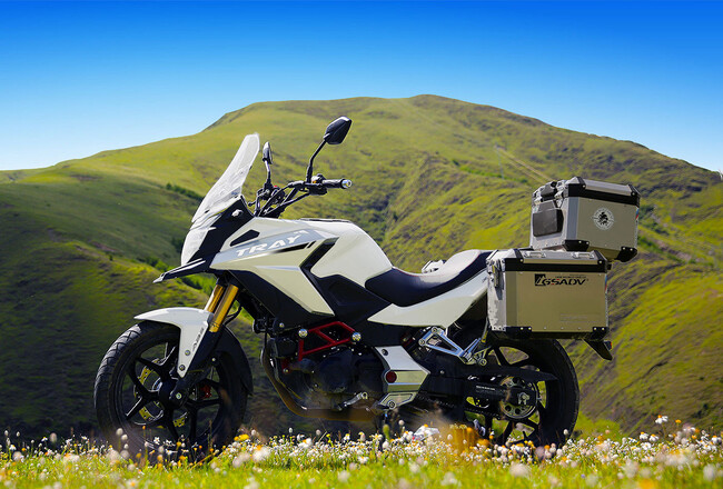 Existe una versión superior, la MH TRAY TOURING, que sube la apuesta hasta los 3.995 euros. Este modelo en concreto viene con herrajes, juego de dos maletas laterales de 30 litros y top case de aluminio resistente al agua de 38 litros.
