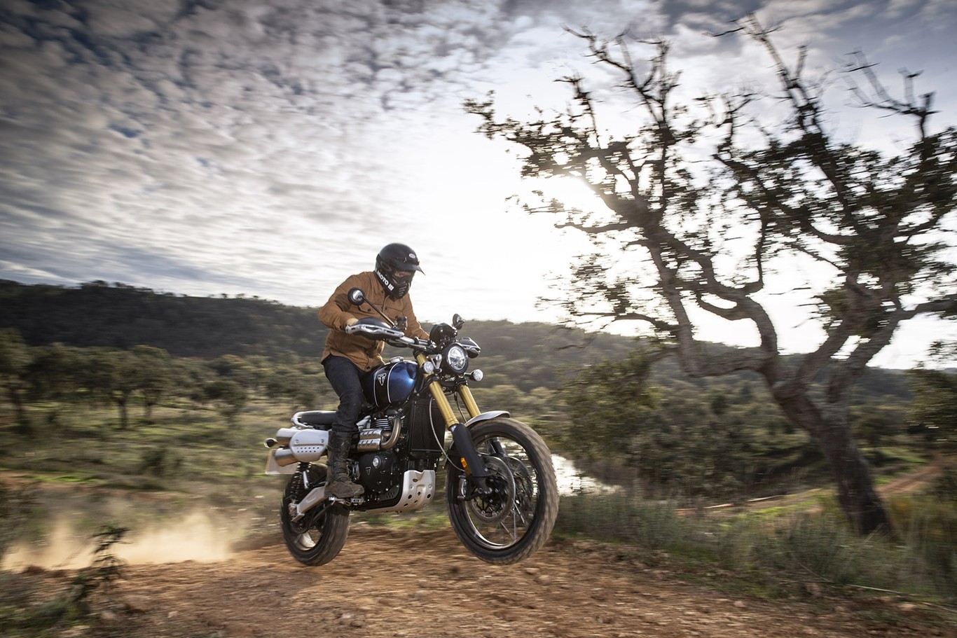 A cambio las Triumph Scrambler 1200 se benefician de una calidad de acabados muy premium y lo último en tecnología desarrollado por la firma británica. El cuadro de instrumentos es un TFT completamente digital e incorpora seis modos de conducción, ABS con asistencia en curva, control de tracción, iluminación LED, control de GoPro integrado, integración con Google Maps y conectividad Bluetooth.