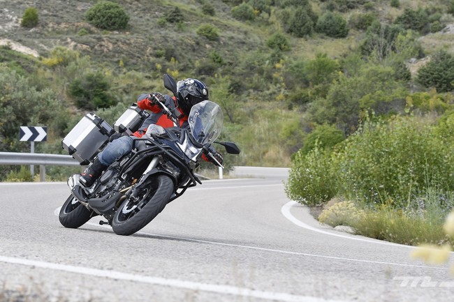 Al subirnos a ella la percibimos como una moto mucho más compacta, igual de estrecha pero sin todo el volumen extra añadido en la trail entre carrocería y protecciones. Su envergadura es más contenida y se agradece a la hora de realizar un uso algo más deportivo.