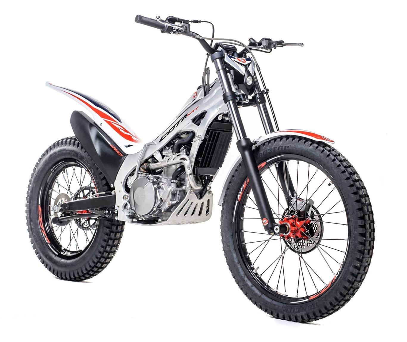 La Montesa Cota 4RT260 y su versión Race Recplica incorporan nuevas protecciones. Ambos modelos estrenan una placa protectora del cárter fabricada en aleación de aluminio heredada directamente de las que Toni Bou y Takahisa Fujinami utilizan en el mundial. Una pieza más resistente que mantiene al mismo tiempo el peso a raya y se complementa con una tapa protectora del piñón de ataque que protege el motor en caso de rotura de la cadena.