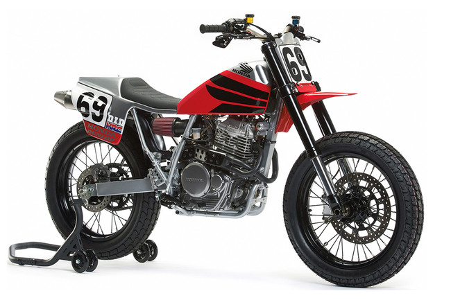Tomando una Honda XR650L como donante, el preparador la redujo a su mínima expresión y comenzó a dar forma a su obra. Del conjunto destaca una carrocería que fue realizada a mano en metal, moldeando unas formas muy distintas a la moto original y que emulan las motos presentes en los óvalos de tierra con una clara inspiración Harley-Davidson XR750. La parte trasera integra el asiento, el colín y los portanúmeros laterales con una bonita deformación para dejar espacio al escape que sale bajo el colín.