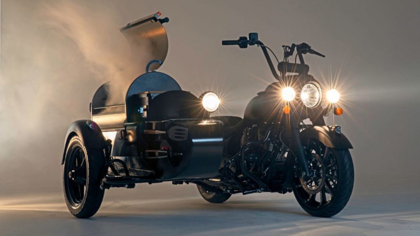 De la mano de dos compañías que representan los gustos más tradicionales en cuanto a motor y gastronomía ha nacido este sidecar adosado a una Indian Springfield Dark Horse con barbacoa incorporada. Dinos si no se te hace la boca agua.