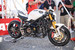 Como podemos ver en la foto, la Monster que supuestamente estaba expuesta en Indianápolis lleva basculante monobrazo, embrague en seco, semimanillares por debajo de la tija unidos a dos barras de horquilla de considerables dimensiones, frenos Brembo "pata negra" y un sistema de escape saliendo por el colín de espectacular diseño. Nada tiene que ver por tanto con la Monster 696 con la que comparte piezas de la carrocería como el depósito o el colín.