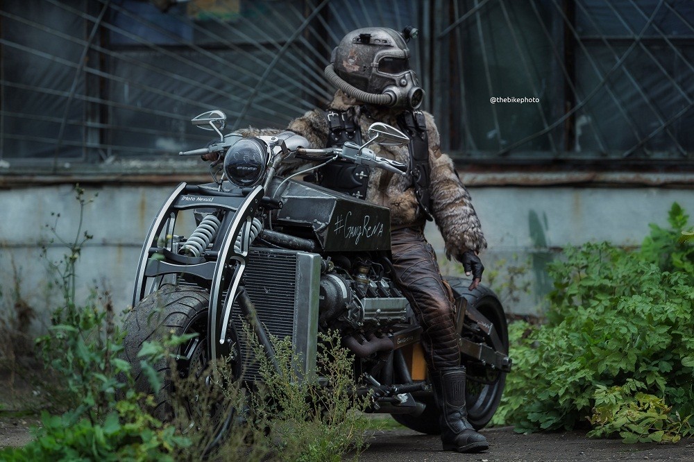 Este verano apareció una moto extraña, enorme y grotesca que dejó a los habitantes de Yakaterinburg, Rusia, con una mueca a medio camino entre la sorpresa y el susto. La moto parecía haber sido producto más de la necesidad de un futuro distópico que del ocio de un especialista con mucho tiempo libre, más aun viendo el casco de su piloto, una simulación de uno de los cascos de las servoarmaduras del 'Fallout'.