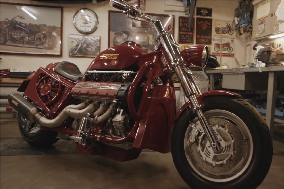 Dice su creador que todo el mundo le decía que "es imposible, no la vas a terminar nunca". Y tuvo que pedir ayuda a otros especialistas, hasta el punto de que la moto tiene 100 piezas separadas hechas a mano para adaptar la estructura. El motor del Ferrari se encaja sobre un chasis norteamericano Boss Hoss, que ofrece a la moto una apariencia bastante robusta, pero acabó funcionando.