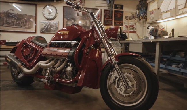 Dice su creador que todo el mundo le decía que "es imposible, no la vas a terminar nunca". Y tuvo que pedir ayuda a otros especialistas, hasta el punto de que la moto tiene 100 piezas separadas hechas a mano para adaptar la estructura. El motor del Ferrari se encaja sobre un chasis norteamericano Boss Hoss, que ofrece a la moto una apariencia bastante robusta, pero acabó funcionando.