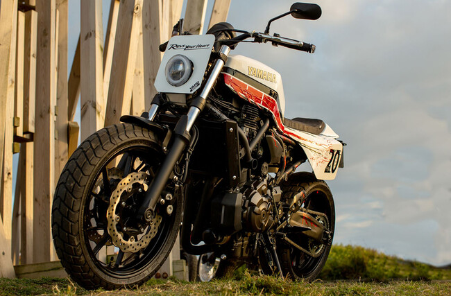 Prácticamente no queda nada del aspecto exterior de la Yamaha XSR700 original, que se ha llenado de componentes con los que han buscado seguir el estilo de las clásicas Yamaha YR-2 e YR-3 de 1960 pero con obvios toques que recuerdan a las motos contemporáneas.