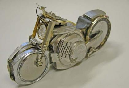 Inspirado por Easy Rider, José Geraldo Reis Pfau, artista Brasileño, hace autenticas virguerias con relojes, gafas y cualquier pieza metálica pequeña que cae en sus manos. En su web se pueden ver mas de 60 modelos, y buscando por la red he encontrado algunas fuentes más que pongo en la línea de enlaces.