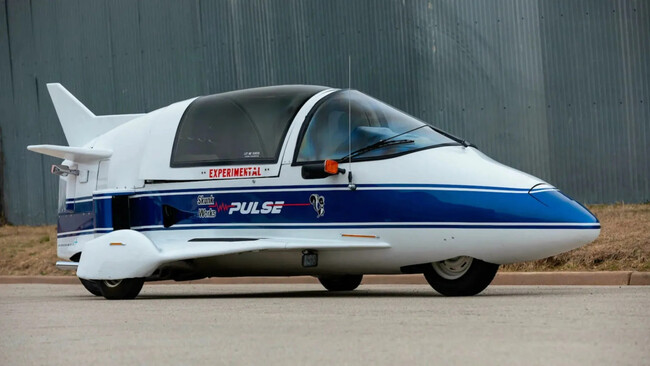 Pulse Autocycle es un raro artefacto que tiene mucho que ver con dos mundos diametralmente opuestos: la aviación y las motos. Su creador era un friki de las dos, y básicamente es lo que ves: un vehículo con fuselaje de avión, que se conduce como un coche pero que está propulsado por el motor de una moto.