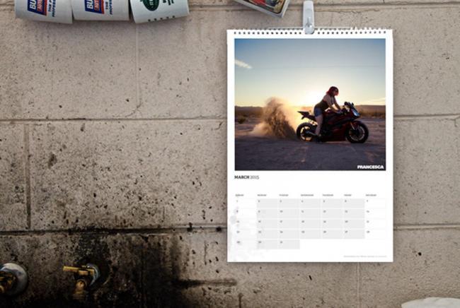Con un tamaño próximo al 40x30 cm el calendario trae fotografías de mujeres realizadas por Leah Petersen (LeahStunts), Lanakila MacNaughton (Womens Moto Exhibit), Alicia Mariah Elfving (MotoLady), Emily George (See See), y otras, que nos acercan con su visión a mujeres reales, de las que te puedes encontrar todos los días por la calle, conduciendo sus motos ya sean clásicas, modernas deportivas o todo terreno.