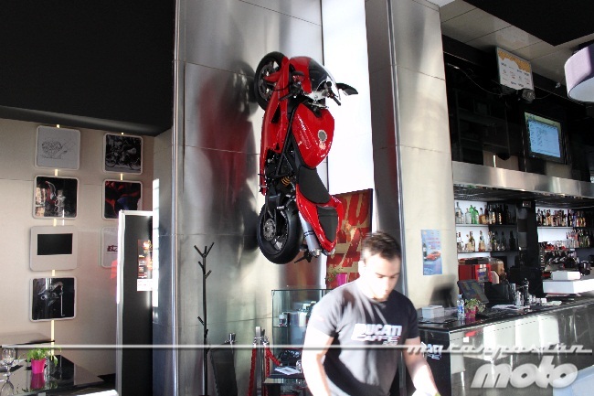 Desde luego si eres fan de la marca estarás en la gloria ya que no vas a ver otra cosa que el logo de Ducati en cualquier sitio donde mires, pero le falta un ambiente un poco más motero y menos comercial o franquiciado, no se como llamarlo. A esto también ayuda sin duda, la parte reservada a la tienda Ducati en la que encontraras desde las clásicas cazadoras o camisetas a cualquier otro accesorio de la marca que te puedas imaginar como el perfume Ducati.