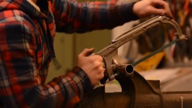Pero creo que en ninguno de esos programas hemos visto desde el principio hasta el final el procedimiento completo. Igual que tampoco recuerdo haber visto a nadie utilizar partes de un escape comercial para adelantar trabajo. En este caso, Mike, de Survivor Customs nos muestra casi todo el trabajo de corte, ajuste y soldadura que realizó para construir un escape a medida para una Triumph.