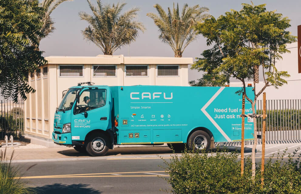 La idea se llama CAFU, y está captando la atención del mundo. Lo habitual es que uno se monte en su moto (o coche, en su defecto o día de lluvia) y se dirija a la gasolinera a repostar. Allí, un empleado o incluso uno mismo podrá repostar fácilmente. Sin embargo, la nueva moda (en Dubai) es que un camión vaya a casa a repostar.